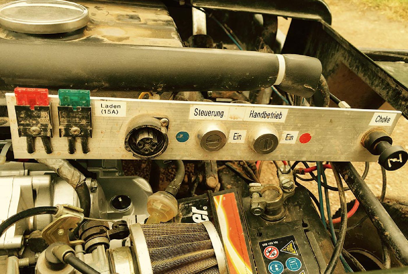 Bezpečný provoz s pásy, čelním sklem, elektrickým navijákem, náhradní nádrží a náhradní pneumatikou.