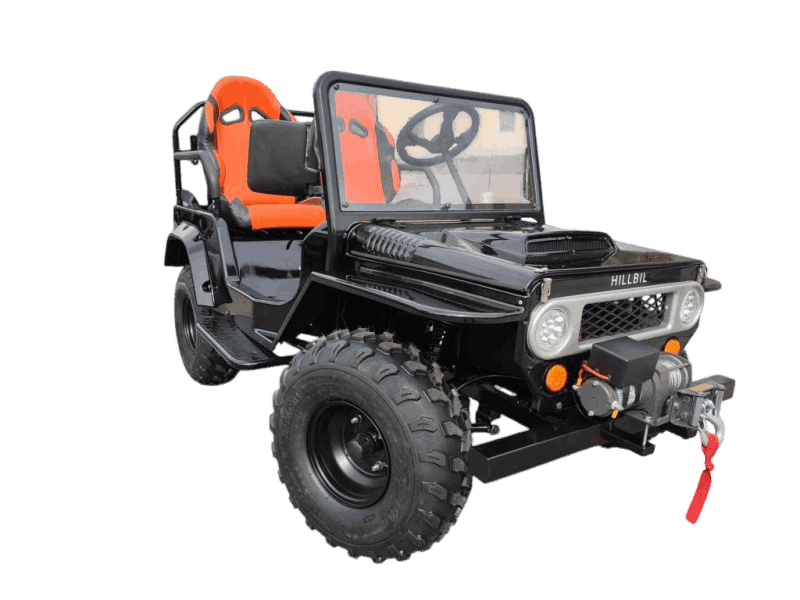 Specifikace výbavy: odpružení vpředu i vzadu, motor 150 ccm se 3 rychlostmi vpřed a 1 vzad, rychlost až 60 km/h, světla, směrovky, klakson, terénní pneumatiky, sedadlo z umělé kůže se bočními úchyty, malý ochranný rám, extra široké sedadlo a karoserie cca 1 m, bezpečnostní pásy, náhradní nádrž, rezervní kolo, přední sklo, ruční brzda, ochrana kol proti stříkající vodě, nášlapy